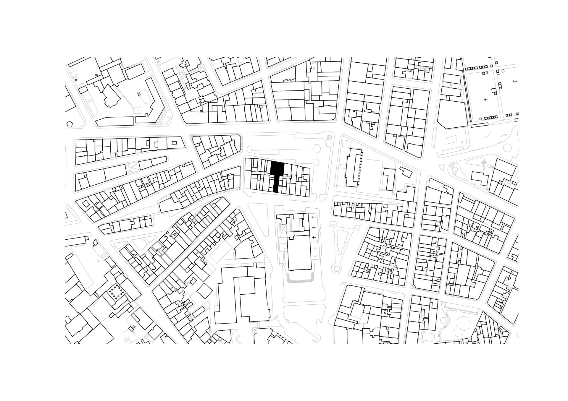 O conjunto dos edifícios encontrava-se em ruína, apenas conservando a fachada sul, característica do início do século passado, e o muro de logradouro a norte. A solução encontrada passa pela “construção” da diferença de cotas existente entre o espaço do rectângulo e o espaço do quadrado, e pela sua conversão no módulo de meio piso de escadas que, repetido na área de transição, organiza a distribuição dos compartimentos em altura.