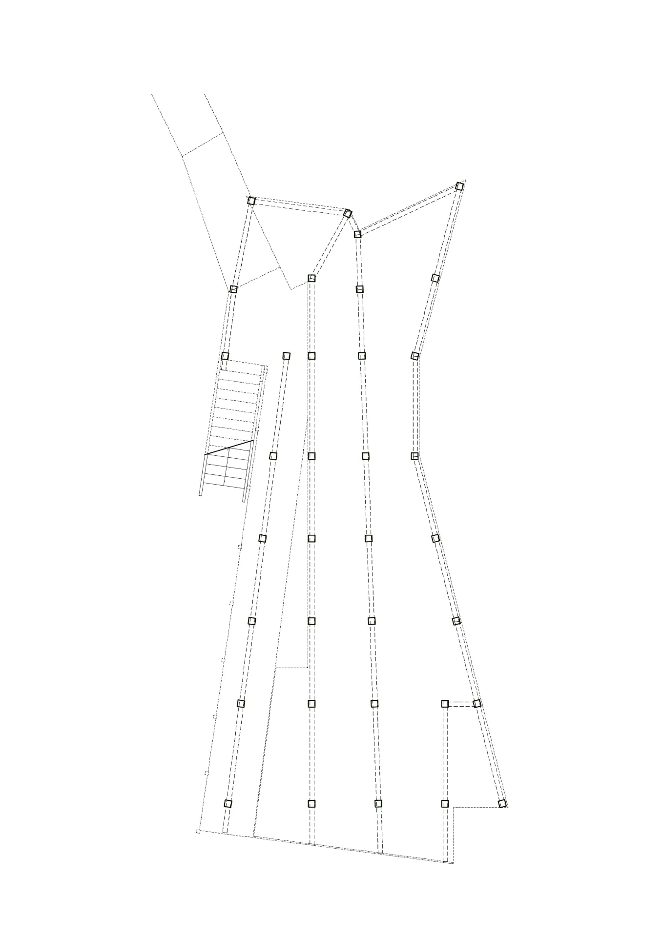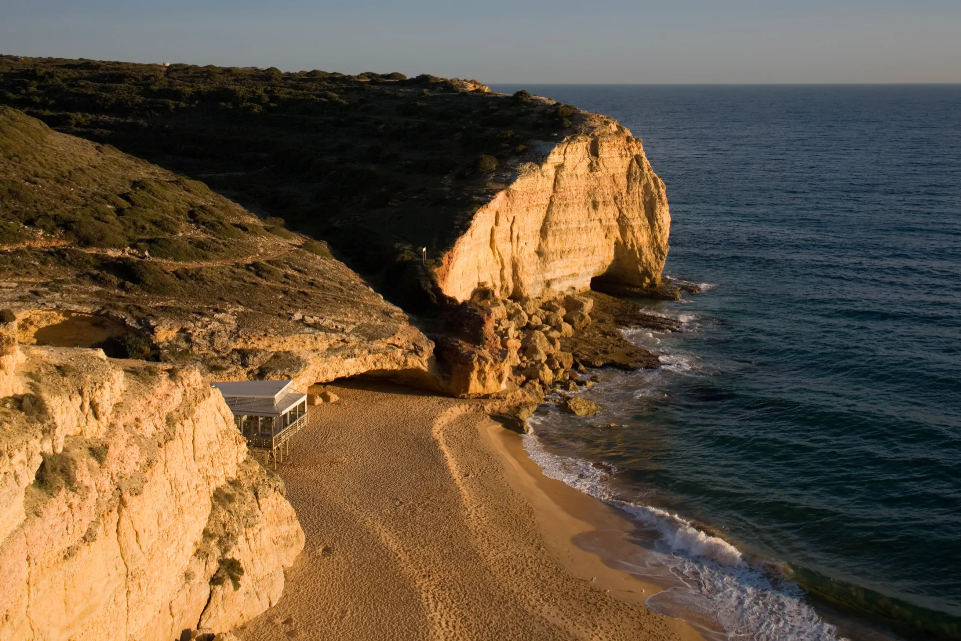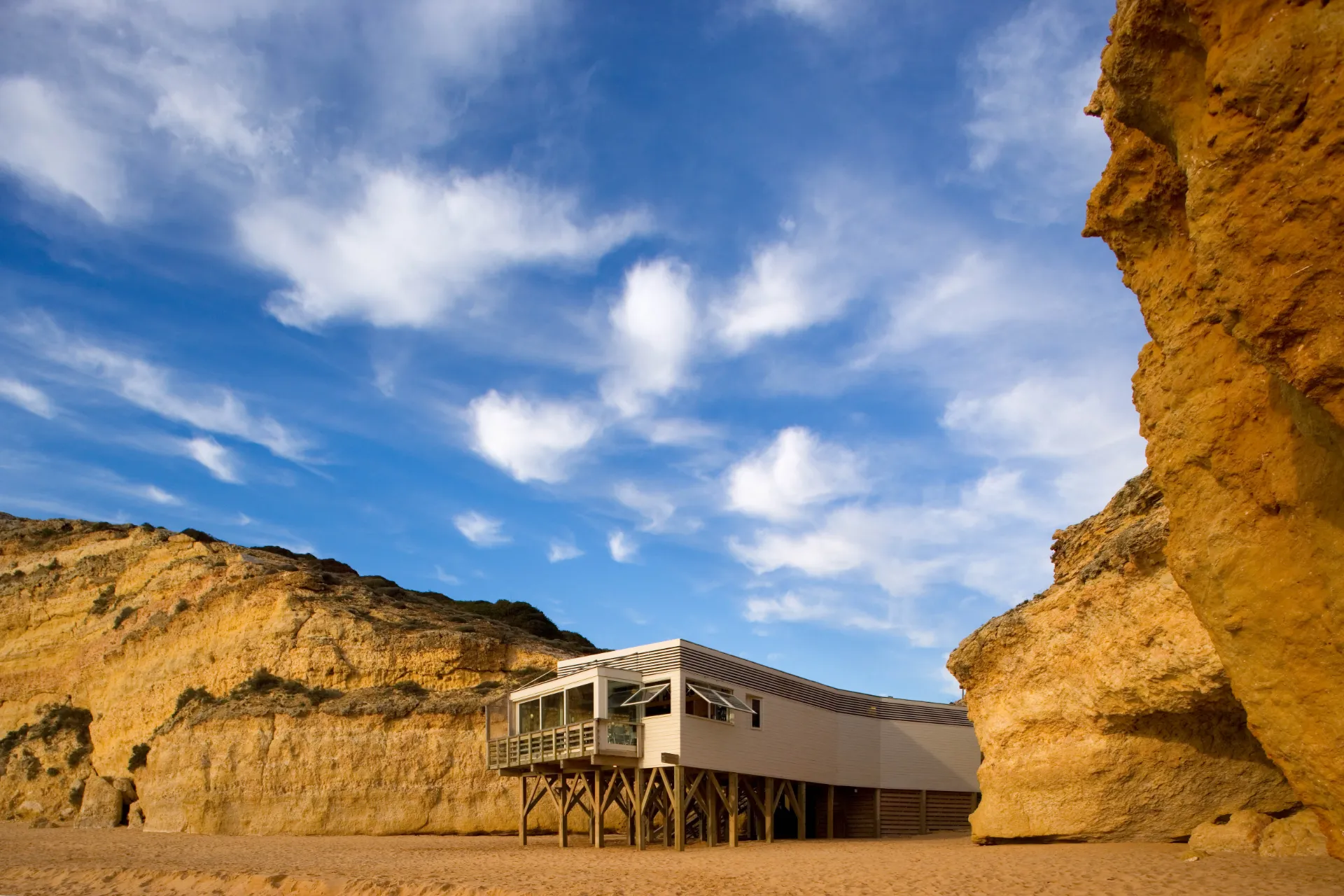 Le projet est fortement influencé par les études géotechniques et le plan qui, ensemble, déterminent l'emplacement et le niveau du sol du bâtiment : construit sur pilotis, il s'éloigne de la concavité de la falaise où se nichait l'ancien restaurant, aujourd'hui démoli, occupant une position moins dissimulée. Le périmètre d'implantation, délimité in situ, résulte de la réinterprétation de contraintes prédéterminées : à l'est et au nord, le respect de la distance minimale par rapport à la falaise ; au sud, l'avancée maximale possible vers la mer ; et à l'ouest, le tracé de la tangente de l'accès à la plage et de l'axe visuel associé.