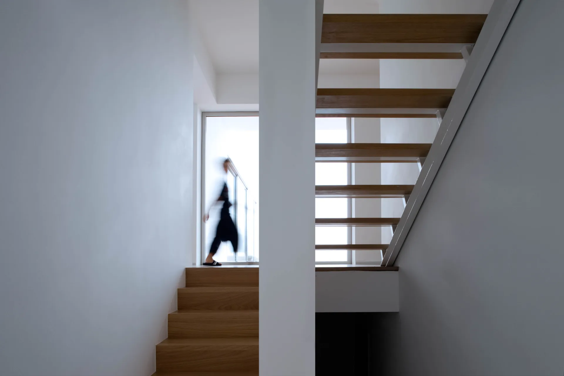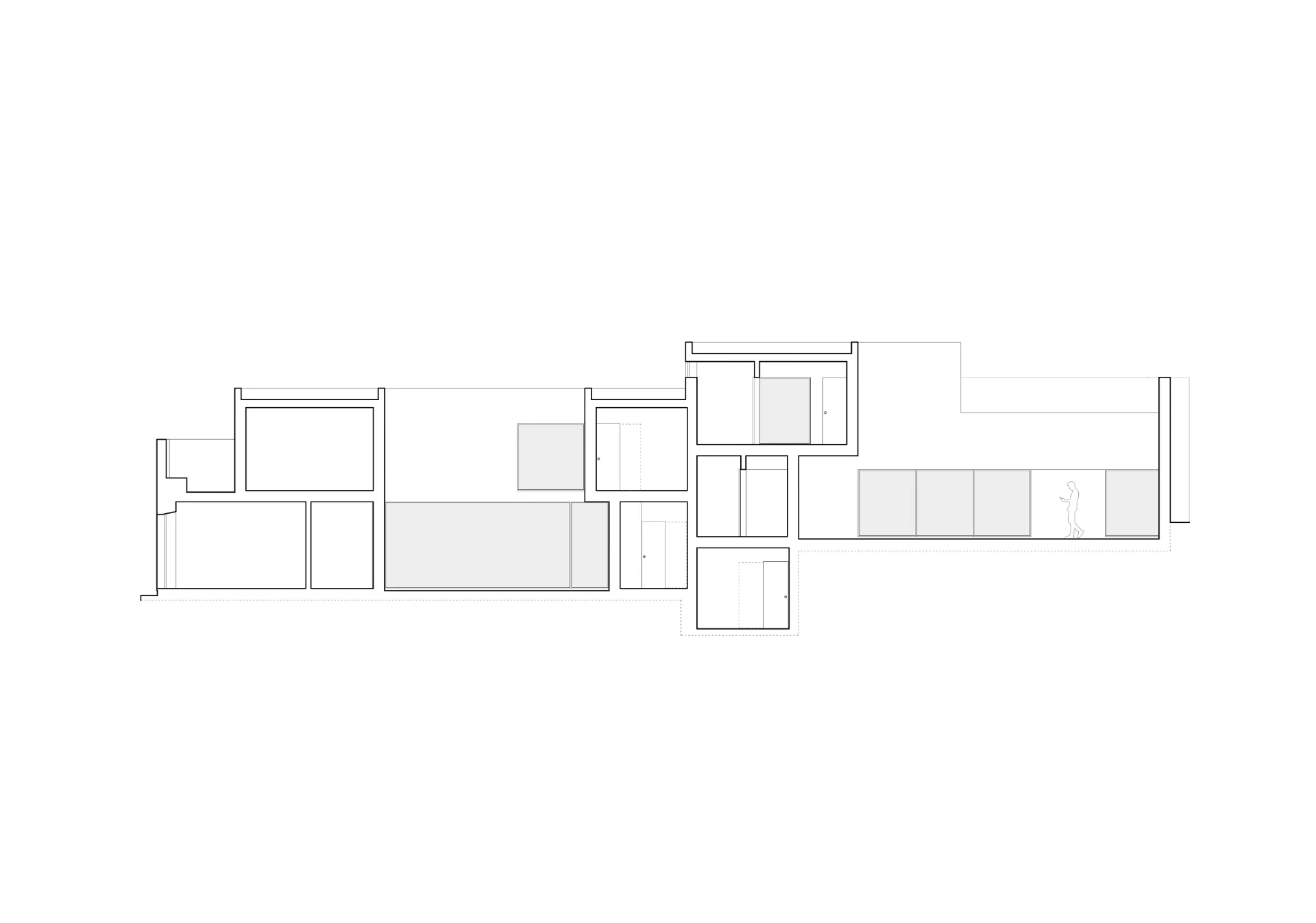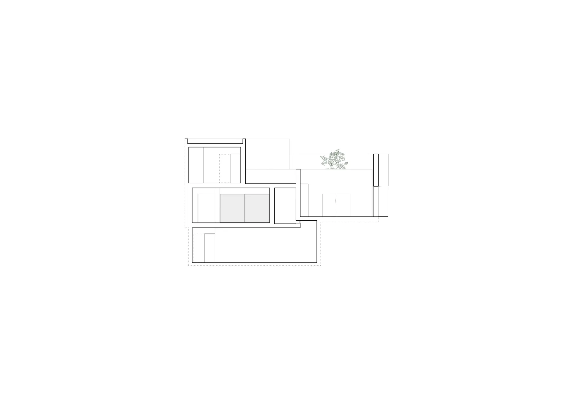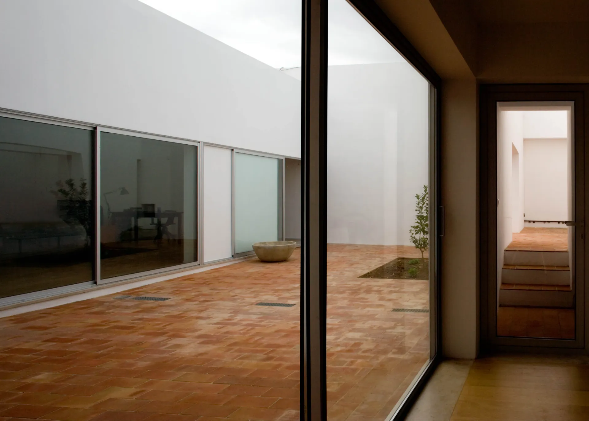 O pátio menor ocupa dois dos quartos, antes desprovidos de luz, do espaço do rectângulo onde se conserva a tipologia preexistente de distribuição através de corredor lateral.
